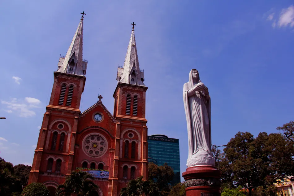 只有加入西贡的摩托大军,才能真正的融入到他们的生活。我骑着这辆本田摩托,幻想自己置身《罗马假日》的剧情里,载着小张在西贡乱窜;读不懂地图上的文字,于是朝着西贡的最高点金融塔骑过去;虽然这个楼还没我在成都上班的位置高,但是它在西贡却是鹤立鸡群,在城市任何位置都能看到;我以为那是市中心,跑过去看和国内一样,并无奇迹。